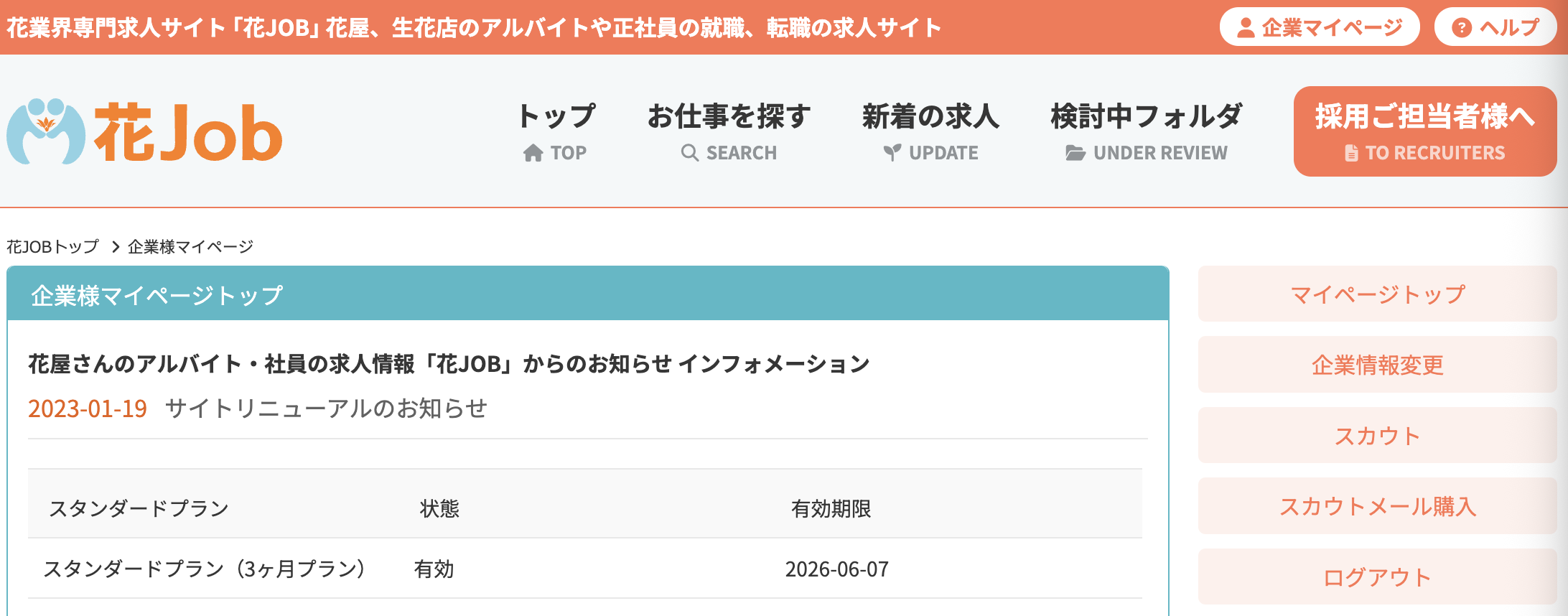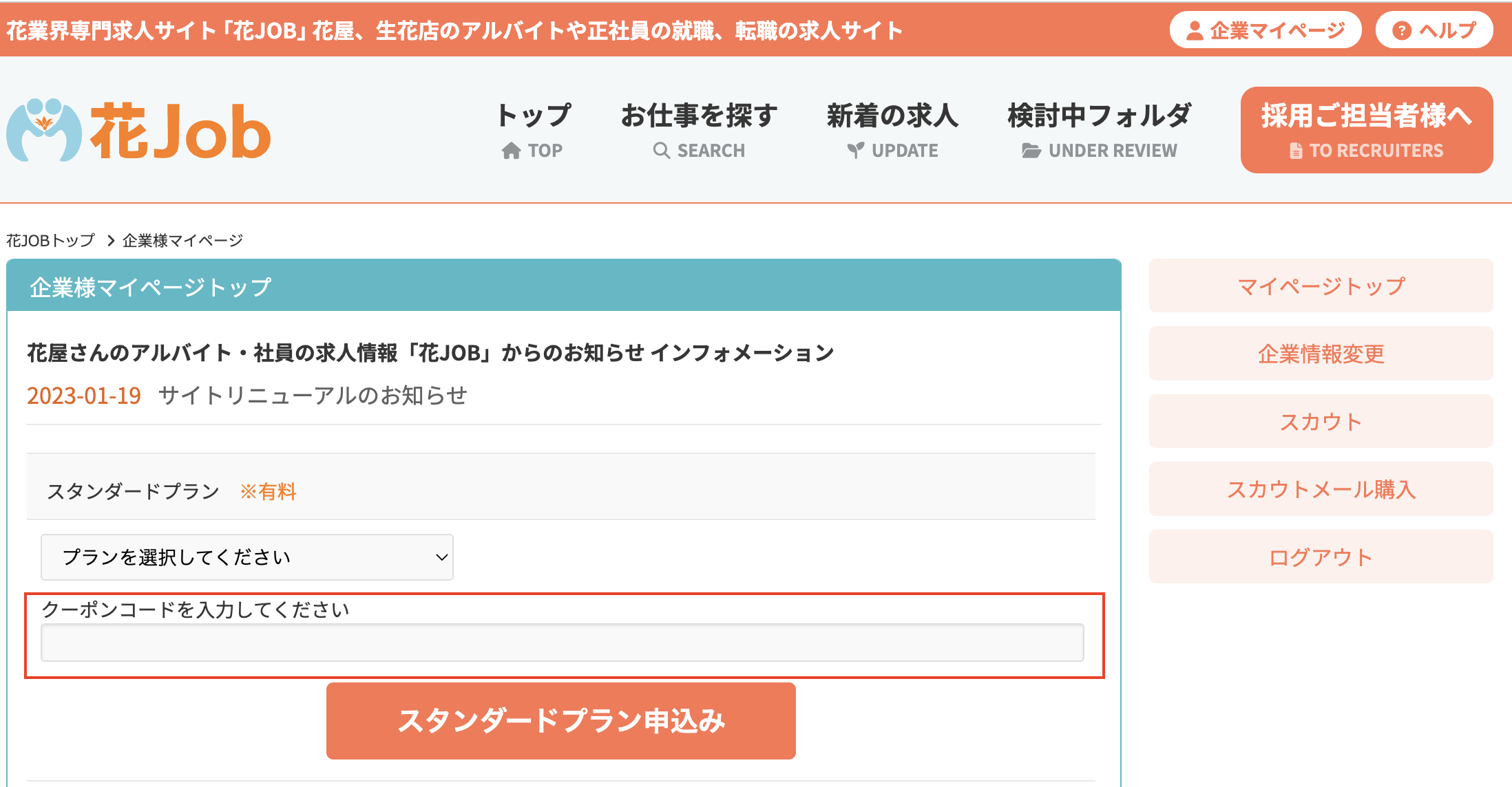 企業マイページよりプランをご選択ください