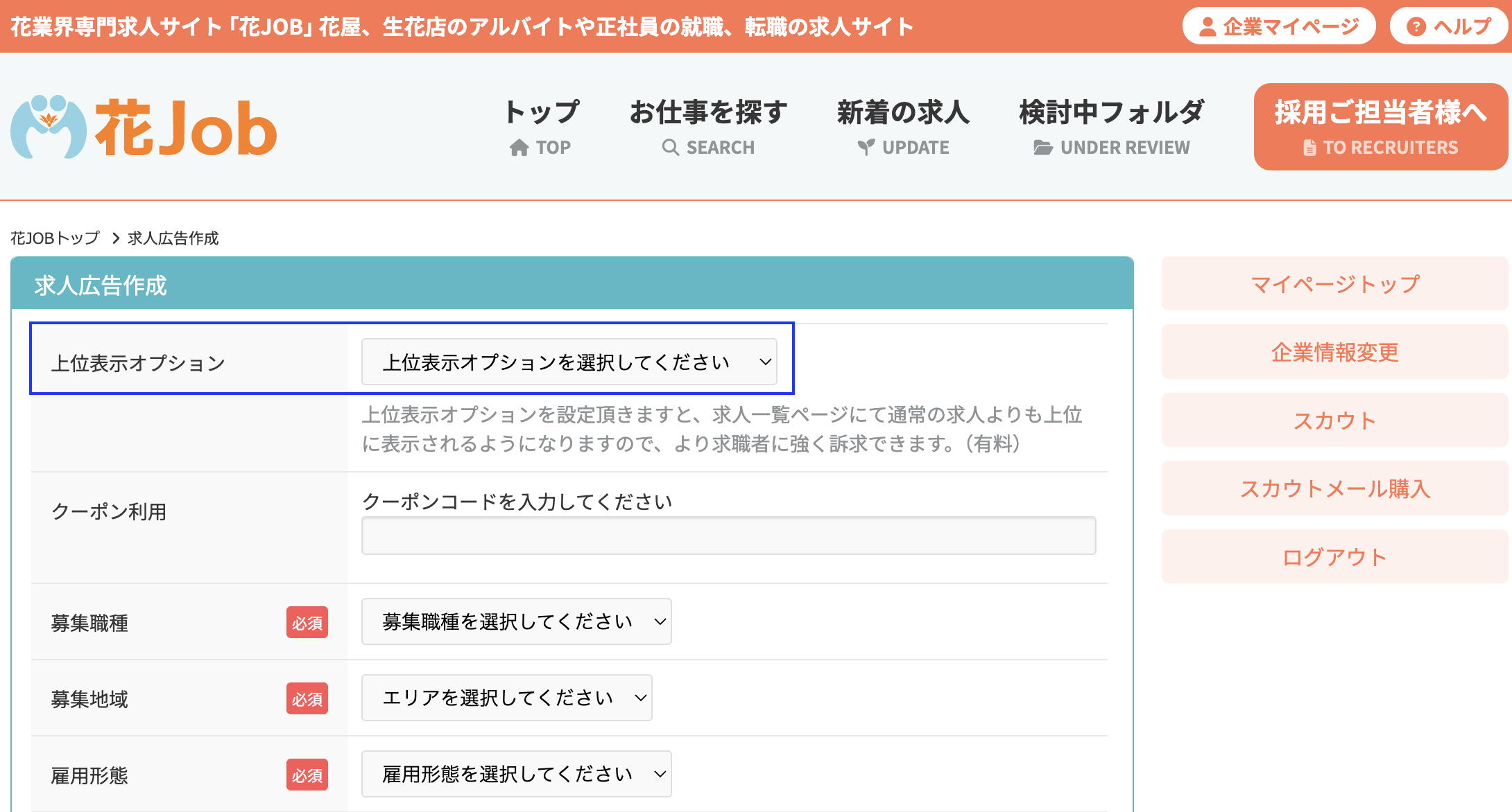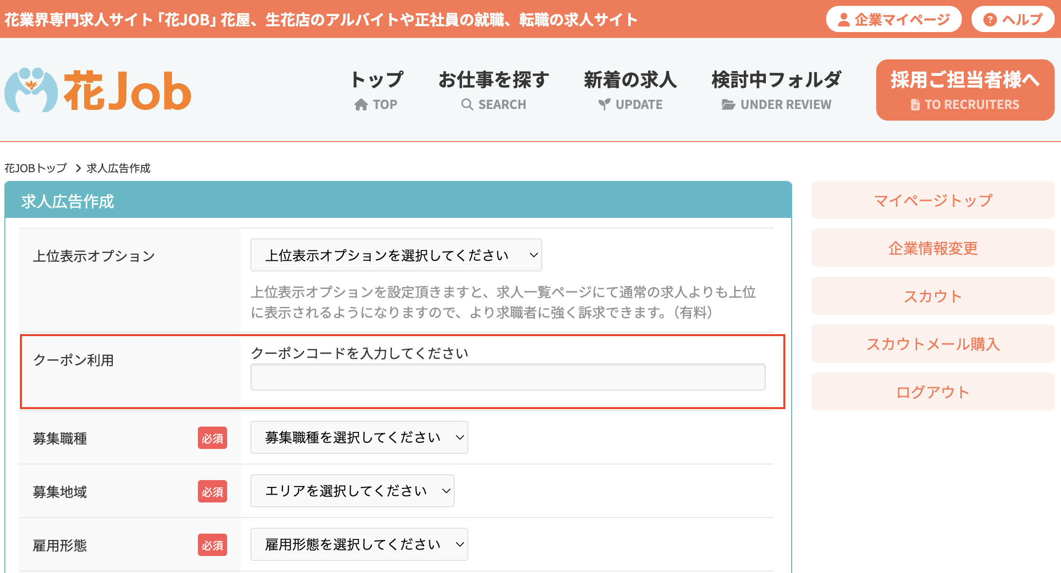 - クーポンは花JOBでの求人掲載にのみ利用可能です。